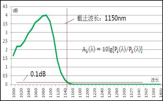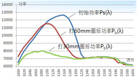 从图3中我们可以看出打圈直径变小后,对滤除高阶模非常有效,并使截止波长拟合图中∆A(b)由1.5dB增加到2.4dB左右,满足了测试条件(IEC60793-1-44和GB/T 15972.44-2008均要求∆A(b)≥2dB时测试值有效)。但对基模功率基本无影响,此时两者截止波长测试结果完全一样。