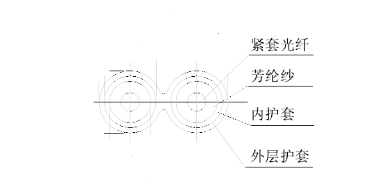 为了用户便于将双芯光缆方便的分支为单芯光缆,并使双芯光缆具有更好的机械和环境性能,我们在设计双芯光缆时,将两根单芯光缆设计为 8 字型结构,如图3所示: