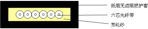 扁平带状软光缆在光纤带周围均匀放置一层芳纶纱,加强了光缆的抗张性能,短期可承受拉力高达200N,另一方面由于该光缆结构尺寸小,重量轻,抗侧压性能好,所以该光缆可实现暗道或地毯下穿线,即使墙面布线,也美观大方。