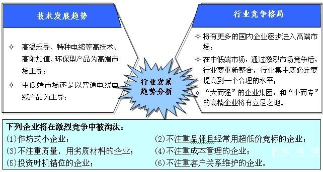 随着线缆产业的发展以及行业内的重组,面对国际大公司的竞争对手,国内线缆企业国际竞争能力还不是很浅个,从长远看,我国线缆企业面临着新一轮的发展机遇,提升技术含量,加快产业升级,实现企业的可持续发展。