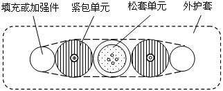 图1为圆形结构,缆内含1个传感光纤紧包单元和1个通信光纤松套元;