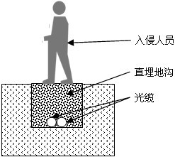 将两条光缆同埋在深0.15m的沟中,然后覆土、压实,由一位试验人员在沟上行走模拟入侵。图10是试验原理示意图,图11是环境背景波形图,图12-1和图12-2分别是常规结构传感光缆和2S+2T多功能光缆的事件脉冲波形图。