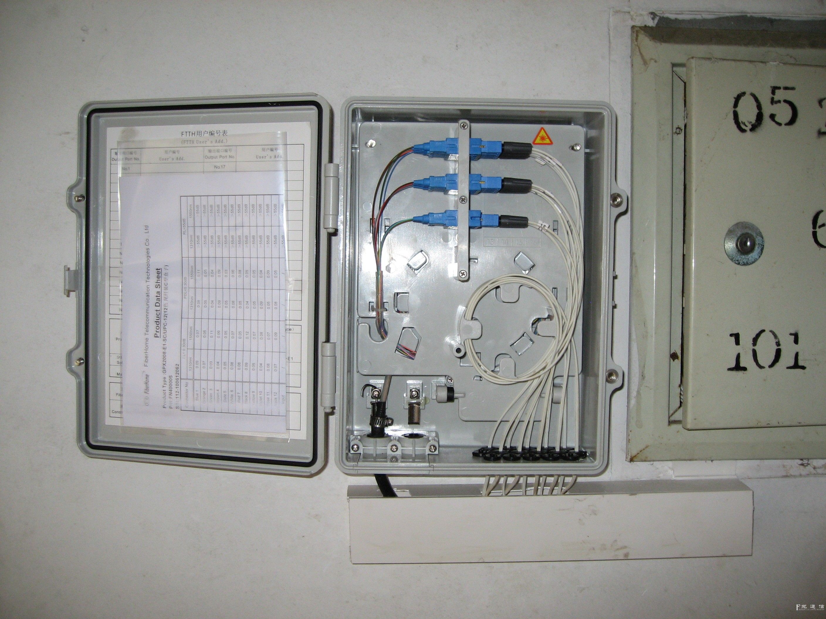楼内有预埋管(新建房屋)的,尽量从预埋管里面穿放蝶形光缆到分线箱或终端;楼内没有预埋管(旧房屋)时,一般采用PVC线槽的方式,从分线箱内引出蝶形光缆,通过PVC线槽将光缆引入到下级分线箱或线路终端。线缆布放时自然平直,不产生扭绞、打圈。预留光缆绑扎整齐美观,避免交叉打扭,盘留弯曲直径在30CM—40CM之内,绑扎松紧度适中,并在墙体上设置二个固定点上对盘留光缆进行固定,防止盘留光缆摆动。