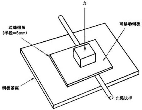 为了实现光缆直接推入的安装方式,必须减小引入光缆与其它电缆或管道内壁之间的摩擦。因此采用一种新型的PE材料来实现低摩擦特性,该材料制成的光缆护套表面有磨砂感,适当地减少摩擦面积,同时硬度方面,比常规的聚烯烃材料制成的光缆更硬,更有利于长距离的推入。使用如下的方法可测定光缆的动态摩擦系数,具体测试如图6所示。