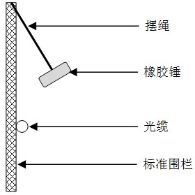 将两条光缆水平直线安装在同一面标准围栏上,用橡胶锤模拟入侵信号摆击围栏,摆击位置和幅度相同,图8是试验原理示意图,图9是环境背景波形图,图10-1和图10-2分别是常规结构传感光缆和2S+2T传感光缆的事件脉冲波形图。
