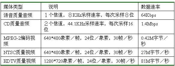 我们好好看看网络通信标准,不难看出很多标准的推出是为了解决某种应用而诞生的,比如说10G/40G/100G的网络推出,主要是解决数据中心和网络主干的应用,所以超六类和七类布线产品也是针对这些网络需求应用而生的,所以不要盲目的把它们应用在其它领域,更不要过早地应用在水平布线系统中,因为到现在为止,我们的桌面应用实际没有我们想象的那样高。多媒体技术广泛用于在线直播、视频点播、远程教育、多媒体新闻发布、网络广告、电子商务、远程医疗、网络电台、实时视频会议等互联网信息服务的方方面面,它的应用将为网络信息交流带来革命性的变化,对人们的工作和生活将产生深远的影响,让我们看看今天数字多媒体的应用对传输的要求有多大,见下表。