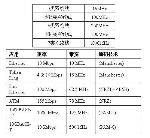 而我们双绞线缆的带宽和相应支持的应用速率如下:
