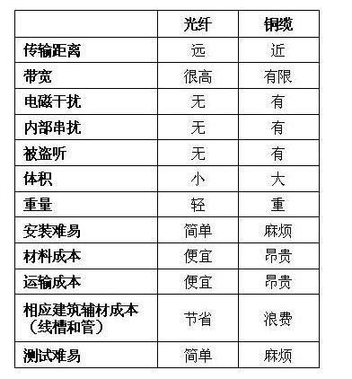 通过以上的比较,我们明显可以看出光纤的优势,铜缆已经发展到极限,我想说明的是如果我们的用户资金充裕,而且希望到桌面的水平系统能满足各种现在和未来的应用,且能具有超过十五或二十年的生命周期,那么我建议您就不要再用铜缆作为到桌面的水平线去布线了,直接采用光纤到桌面是最佳的解决方案,至少可以采用光纤和铜缆共用的方式,尤其是与七类布线系统的相比,光纤的性价比应该更好的。不光是因为光纤本身具有的优势,随着网络化建筑和网络化家居的普及,我们建筑物内的所有应用系统都将实现IP智能网络化,不会再有模拟通信信号的存在,也是光纤系统得以普及应用的时候。另外,其实在水平光纤布线时,不一定要用价格较贵的OM3万兆光纤,完全可以采用价格便宜的OM2千兆光纤,因为一是我们的水平布线距离是不超过90米的,二是新的以太网万兆光纤标准(10GBASE-LRM)的应用,使我们的OM1和OM2的光缆,传输万兆时也能达到300米的距离。
