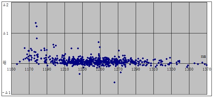 由图1可明显看出1625nm的数据较1550nm窗口下宏弯损耗分散,实际数据证实长波长对弯曲的敏感程度更甚。