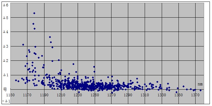 通过以上分析,可以看出截止波长对宏弯损耗有一定的影响,当截止波长分布在1210nm-1290nm范围内时,1550nm、1625nm窗口下宏弯损耗相对集中,数据稳定,这为我们优化工艺改善宏弯损耗提供了有利的数据依据。