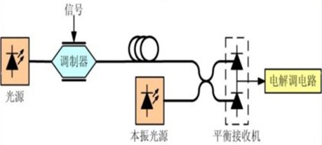 相干光通信的一个最主要的优点是相干检测能改善接收机的灵敏度。在相同的条件下,相干接收机比普通接收机提高灵敏度约20dB,可以达到接近散粒噪声极限的高性能,因此也增加了光信号的无中继传输距离。