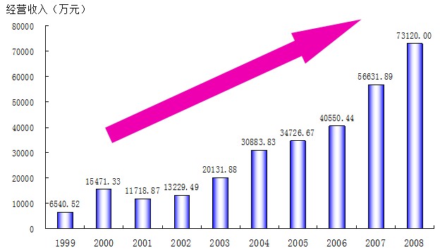 公司成立10年以来,成功转型实现快速稳步发展。08年经营收入已达7.3亿。