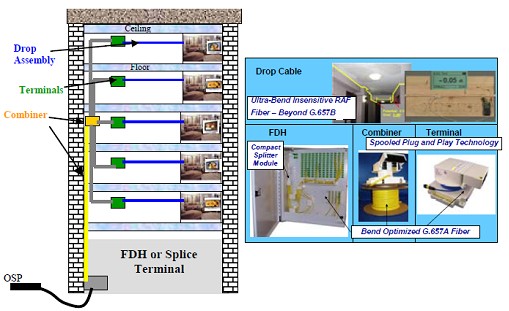 虽然美国在2008年9月,1.1亿单户住宅已有约12%实现光纤到户,而3000万多住户单元(MDUs)只有大约3%有光纤通的每个住户。美国OFS Fitel公司报道采用新的光纤,光缆,以及连接技术,可以大大降低MDU光纤布线系统的安装人工和材料。最近的创新可以减少安装费用65%和提高部署速度达500%。