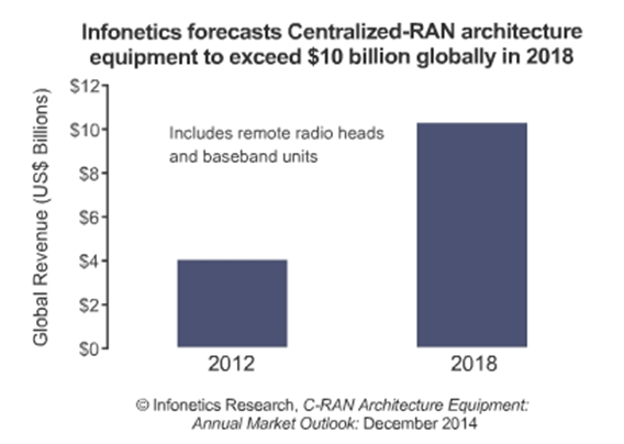 近日,市场调研公司Infonetics发布其最新的关于C-RAN架构设备市场展望。