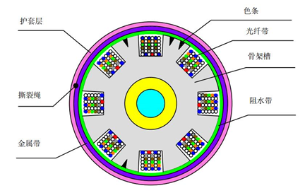 1、骨架缆骨架槽内集成芯数多,光纤密度大,光缆直径小,重量轻,便于敷设;