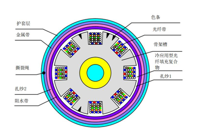 关键词:骨架式、油膏填充、光纤带工艺、阻水性能良好、耐强冲击